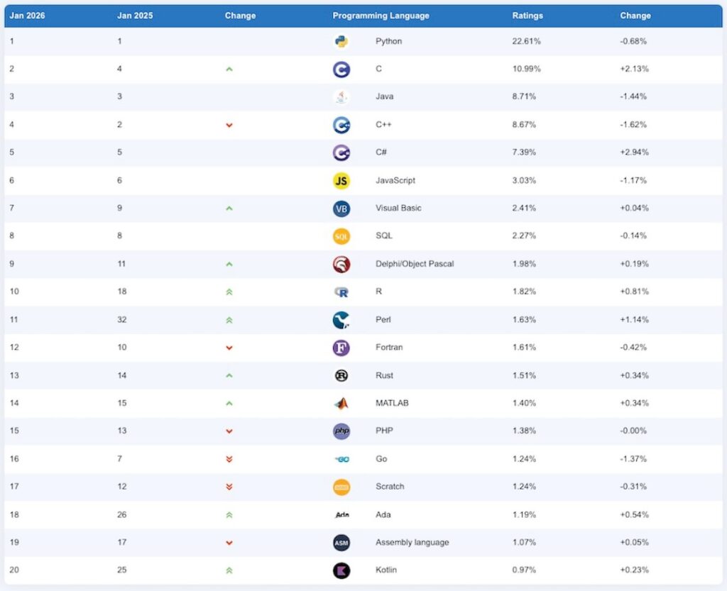 Informatique Langages de programmation en 2026 ·janvier 5, 2026 ·webadmin 2026classementinformatiquejavajavascriptlangageprogrammationpythontop 20 Navigation de l’article ← Les survivants du TitanicUn point sur Windows → Related Articles Un point sur Windows janvier 6, 2026 Le bloc-notes magique de chez X-Pen mars 26, 2025 NXTPAPER 11 Plus un écran proche du papier mars 3, 2025